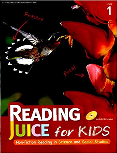 READING JUICE FOR KIDS 1 STUDENT'S BOOK (WITH CD). READING JUICE FOR KIDS는 미국 교과과정에서도 고학년으로 넘어갈수록 중요성을 부각하게 되는 NON-FICTION영역! 과학교과, 사회교과와 연관된 지문은 다양하게 NON-FICTION 지문을 접할 수 있도록 하며, 명확한 지문은 NON-FICTION을 처음 접하는 학습자도 쉽게 접근할 수 있습니다.
