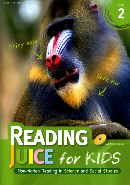 READING JUICE FOR KIDS 2 STUDENT'S BOOK (WITH CD). READING JUICE FOR KIDS는 미국 교과과정에서도 고학년으로 넘어갈수록 중요성을 부각하게 되는 NON-FICTION영역! 과학교과, 사회교과와 연관된 지문은 다양하게 NON-FICTION 지문을 접할 수 있도록 하며, 명확한 지문은 NON-FICTION을 처음 접하는 학습자도 쉽게 접근할 수 있습니다.